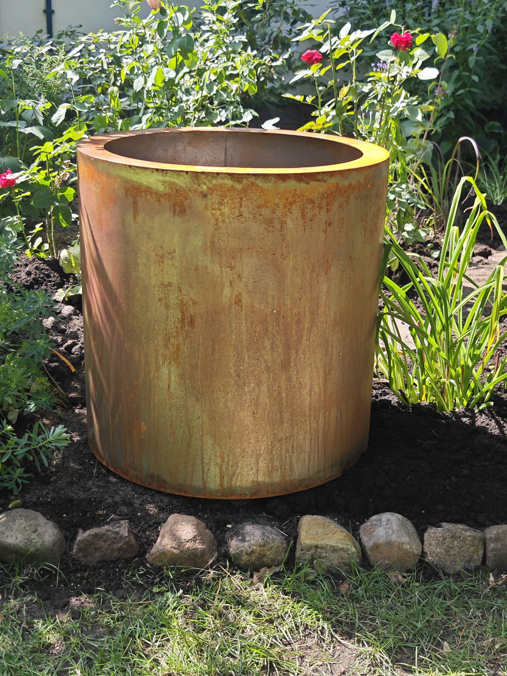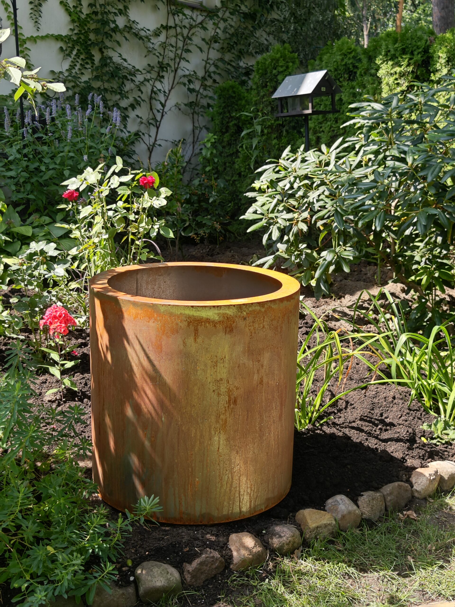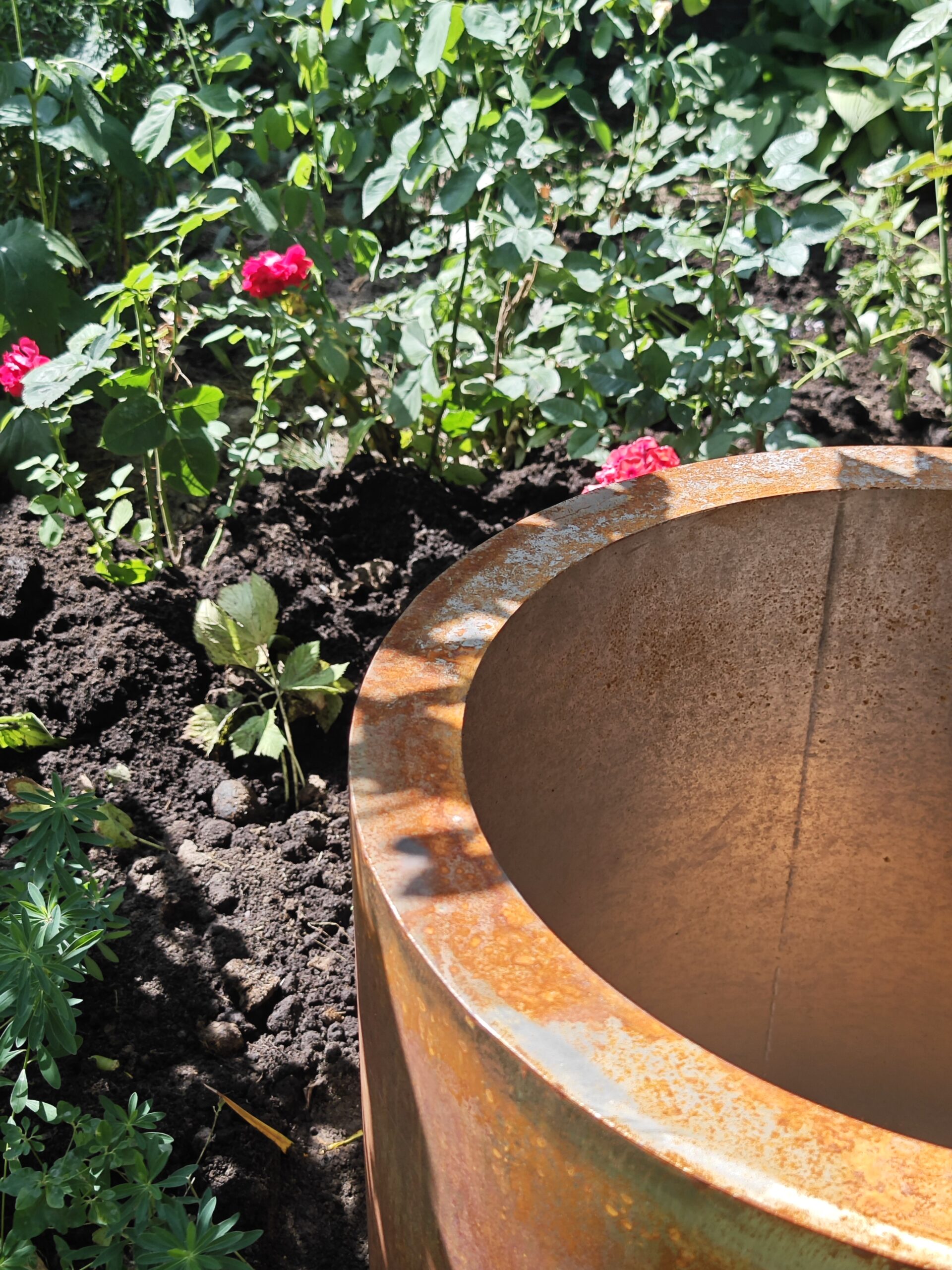 Donica walcowa o średnicy 60 cm i wysokości 60 cm to elegancki, solidny element aranżacyjny dla miłośników nowoczesnego stylu i naturalnych materiałów. Jej ciepły, rdzawy kolor pięknie kontrastuje z zielenią roślin, dodając każdemu otoczeniu przytulności i charakteru.