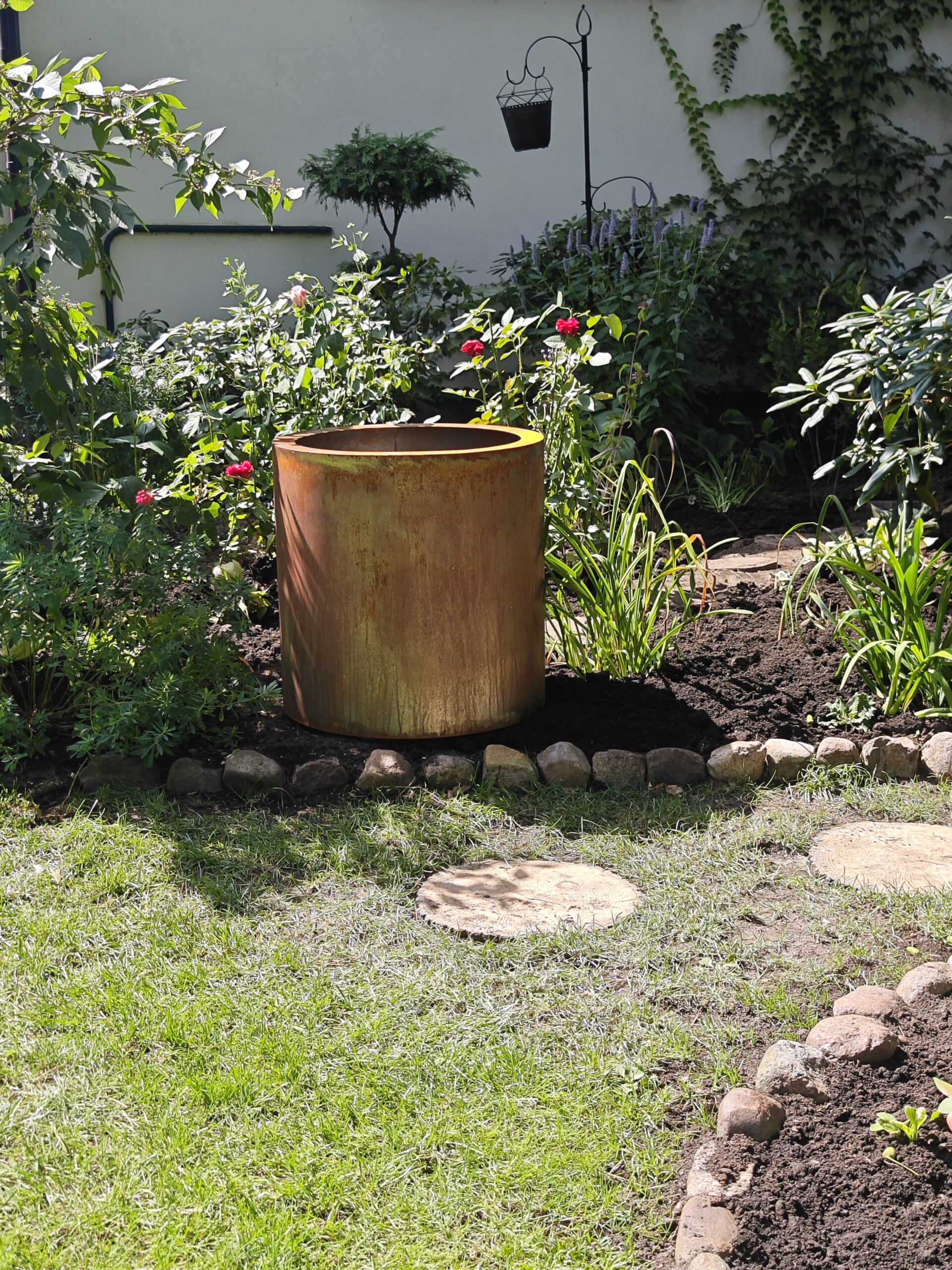 • Każda sztuka jest unikatowa — odcień i rysunek rdzawej powłoki różnią się, co sprawia, że donica nabiera wyjątkowego, indywidualnego wyglądu.