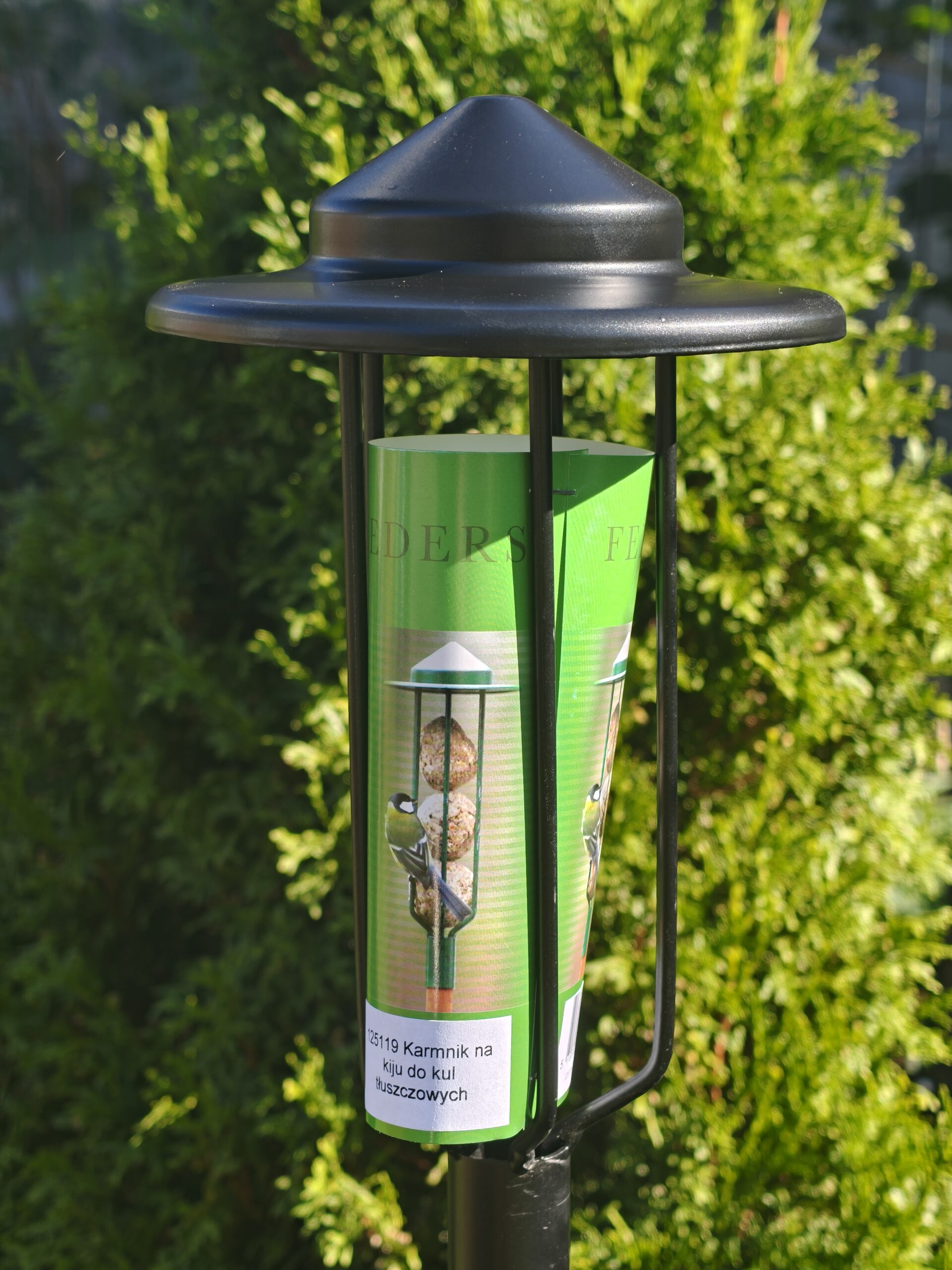 Daszek chroni pokarm przed deszczem i śniegiem, a całość pozwala obserwować karmiące się ptaki z bliska.